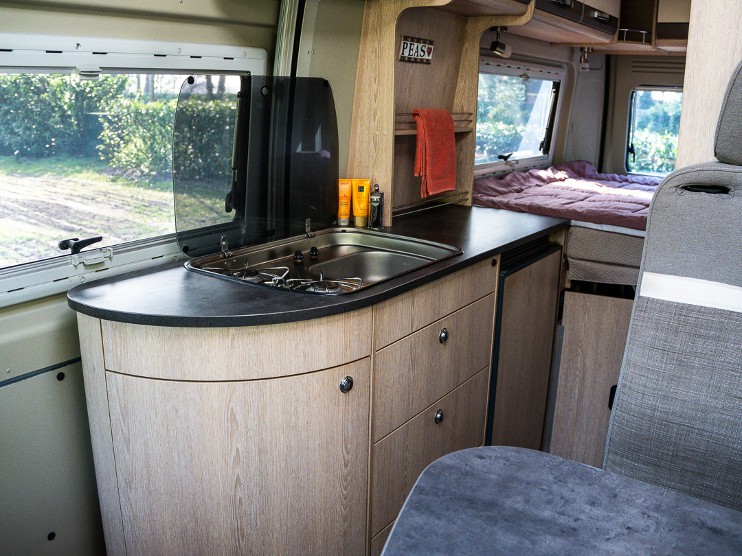 Dankzij het dwarsbed achterin benut je de ruimte optimaal en voelt de camper van binnen extra ruim aan. Overdag geniet je van een royale zitgroep en een praktische keuken, waardoor deze buscamper alles biedt wat je nodig hebt voor onderweg.