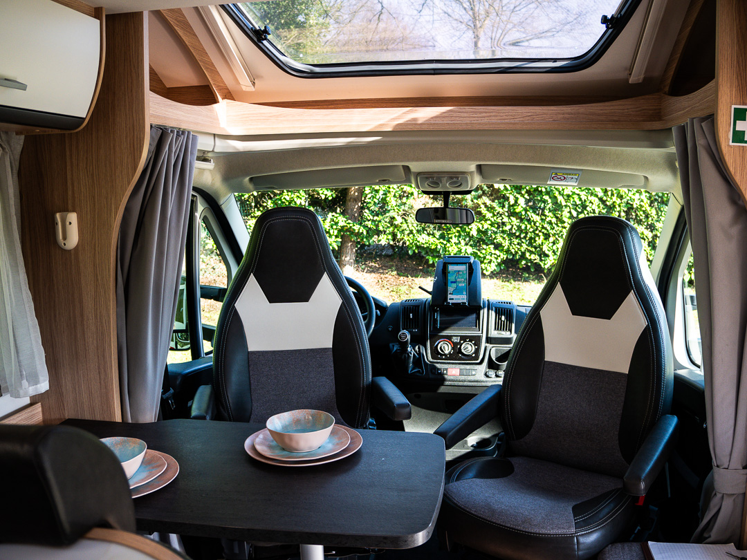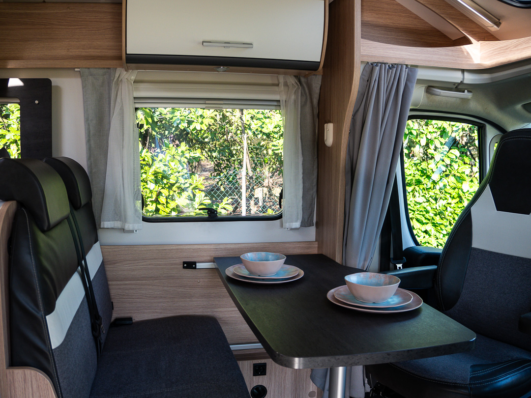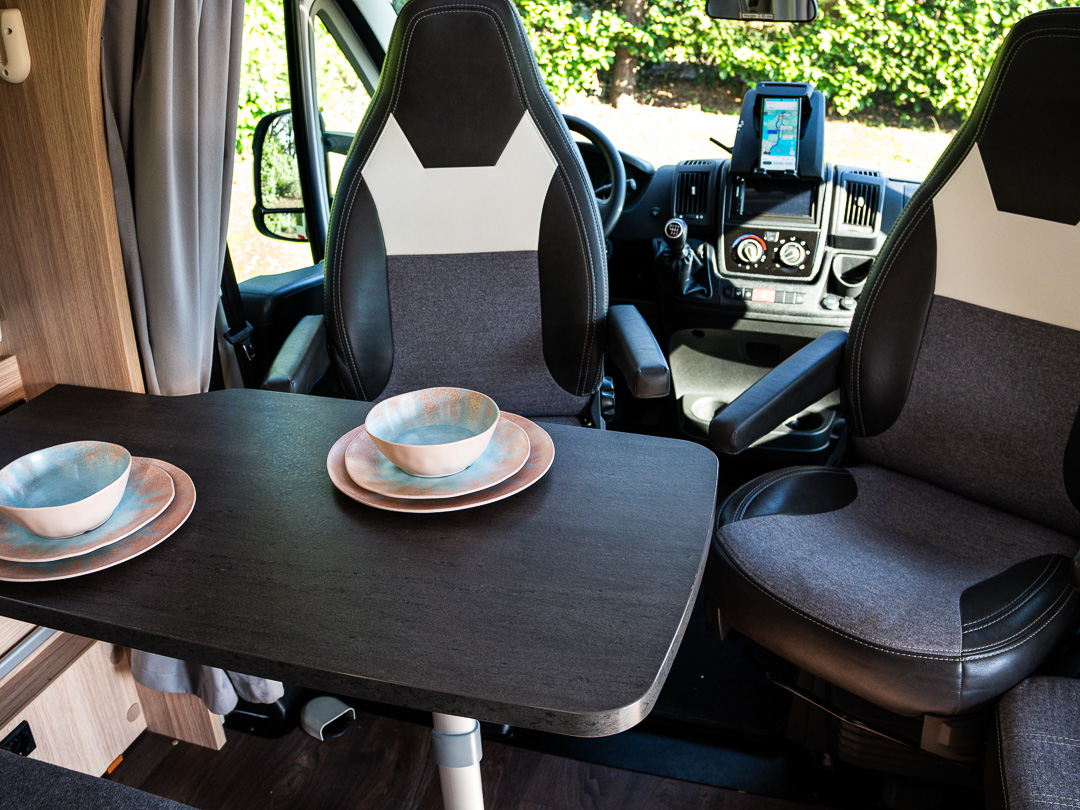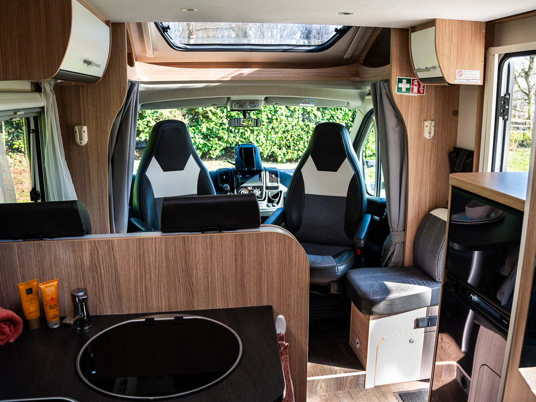 - Gezellige zitruimte: De ruime halve treinzit en draaibare pilotstoelen creëren een knusse plek voor de koudere avonden.